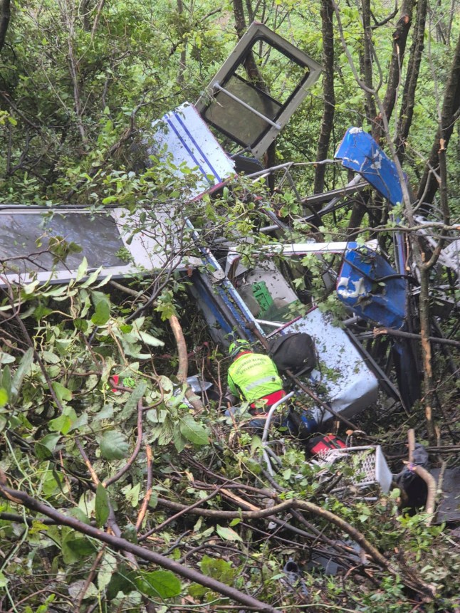 This sent the carriage and its passengers swinging into a nearby pylon before plummeting nearly 100ft to the steep slope below.