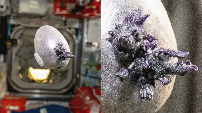 The alien-looking potato had gross purple tendrils growing out of it,which Don explained was due to the zero gravity.