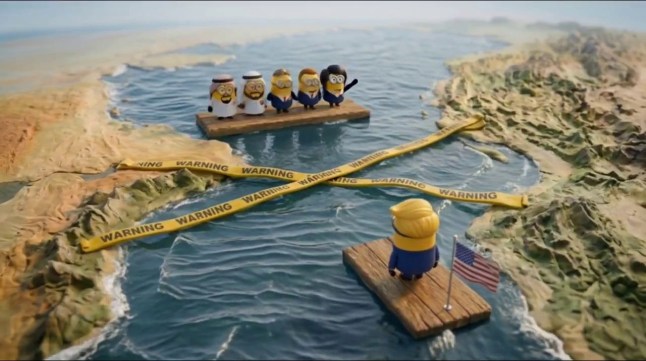 The latest video shows the US leader as a minion,counting down to ‘reopen’ the Strait of Hormuz and failing each time.