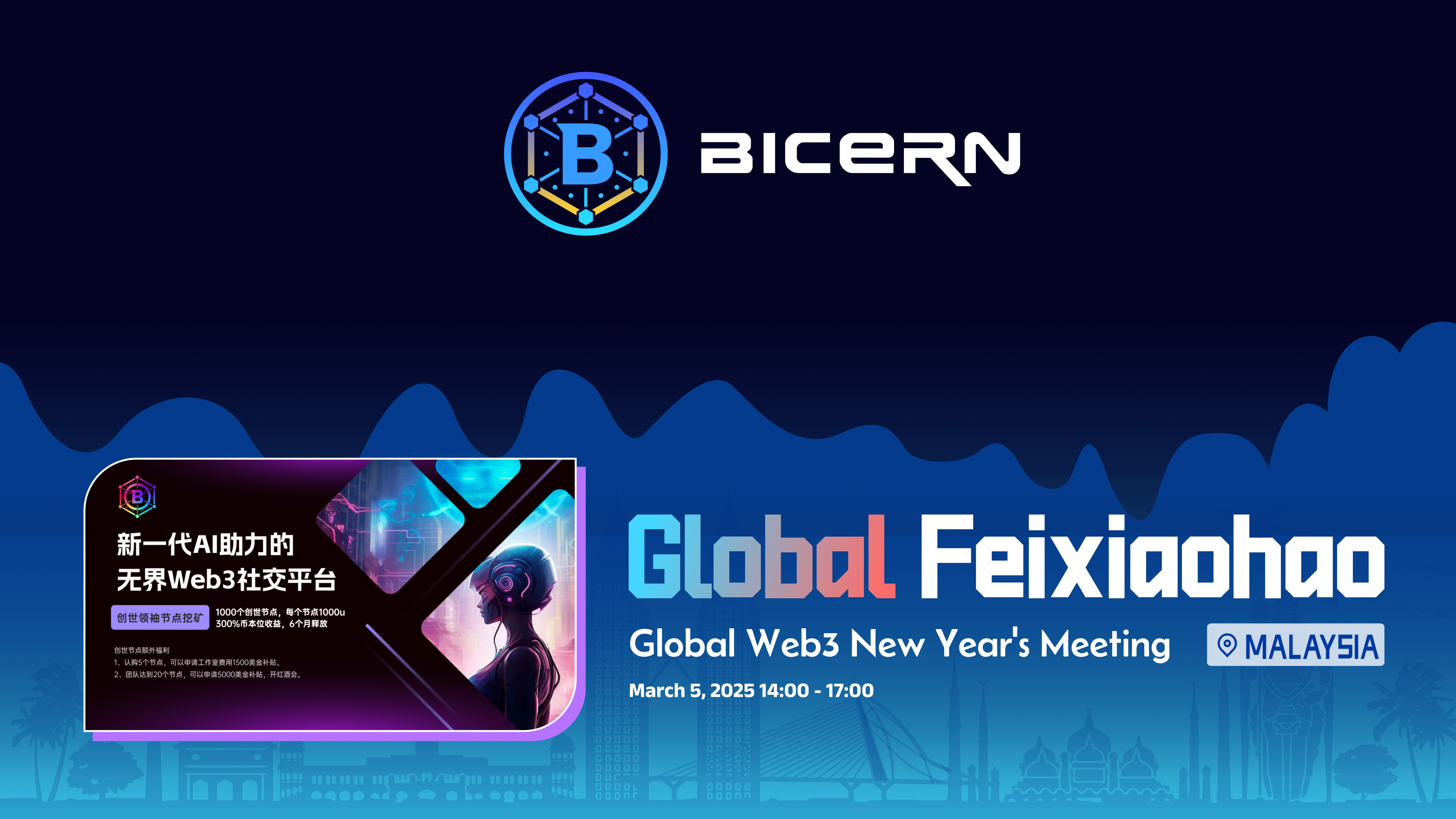 At the event, Bicern will collaborate with Feixiaohao, Talking Web3, Nasdaq Business School, and other globally recognized institutions to engage in deep discussions on key topics such as Web3 social innovation, AI and Web3 integration, multi-chain asset management, and more.