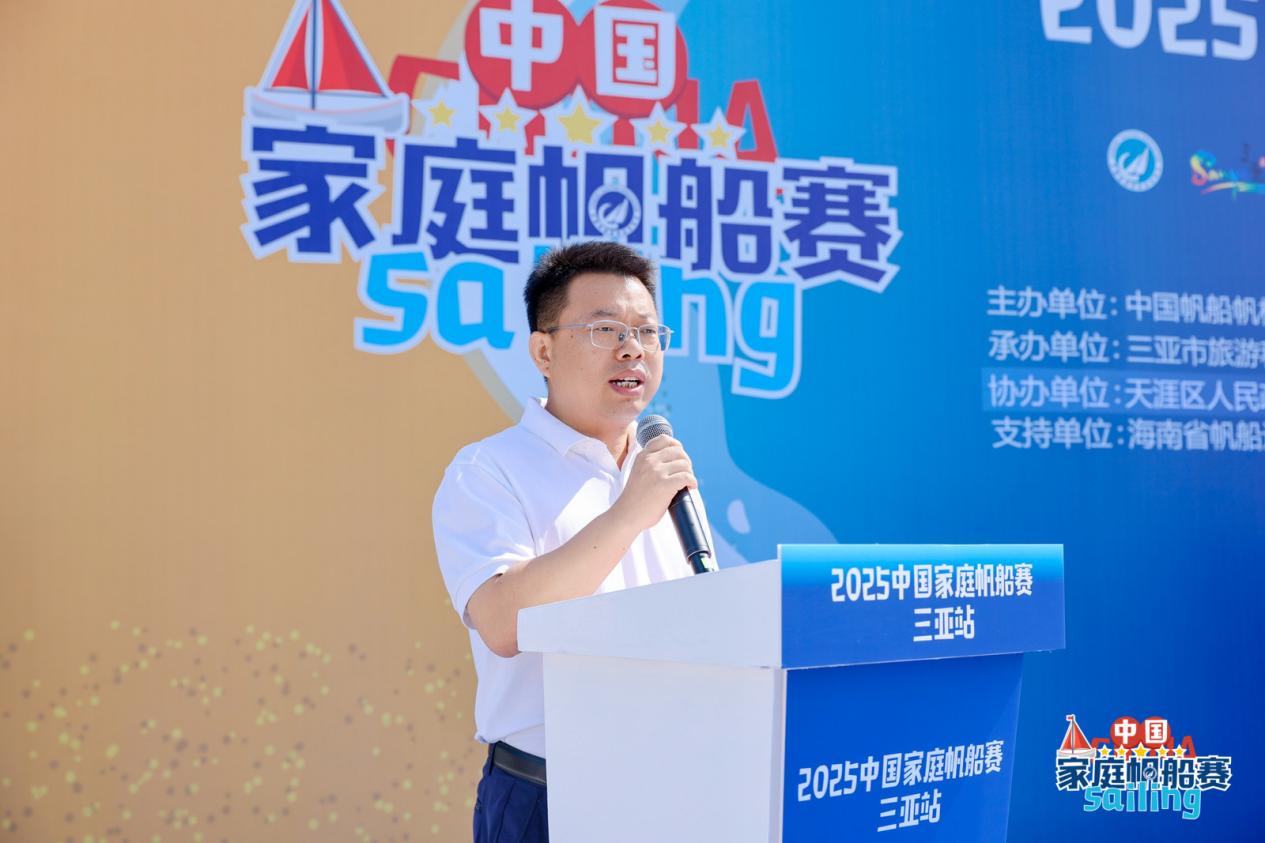 Fu Danqing, Vice President of the China Sailing and Windsurfing Association, announced the opening of the 2025 China Family Sailing Championship - Sanya Station.