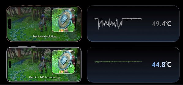 The upcoming Magic7 Series smartphone will bring on-device generative AI to gamingpowered by NPU computing for the first time. The new serieswill introduce the industry's first real-time AI graphics rendering for mobile gaming. Compared to other smartphones,HONOR's solution reduces GPU load,leading to lower device temperatures and a better gaming experience with higher image quality.
