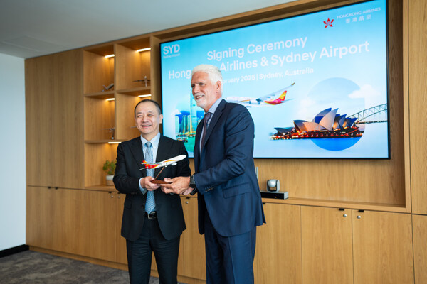 To mark this occasion,a signing ceremony was held at Sydney Airport,attended by representatives from Hong Kong Airlines,Sydney Airport,Chinese Consulate General in Sydney,local officials and the Tourism Board.