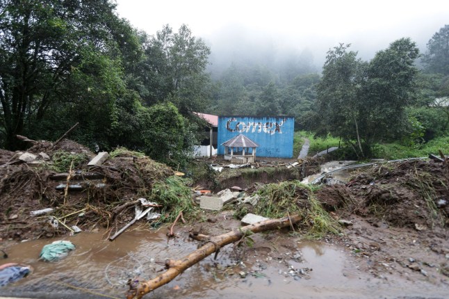 A blocked road affected by rain in Huauchinango in Puebla state,Mexico. (Picture: Xinhua/Shutterstock)